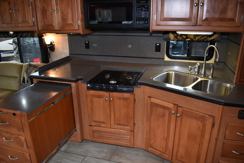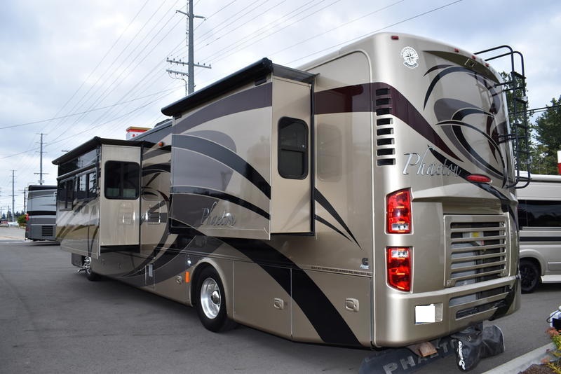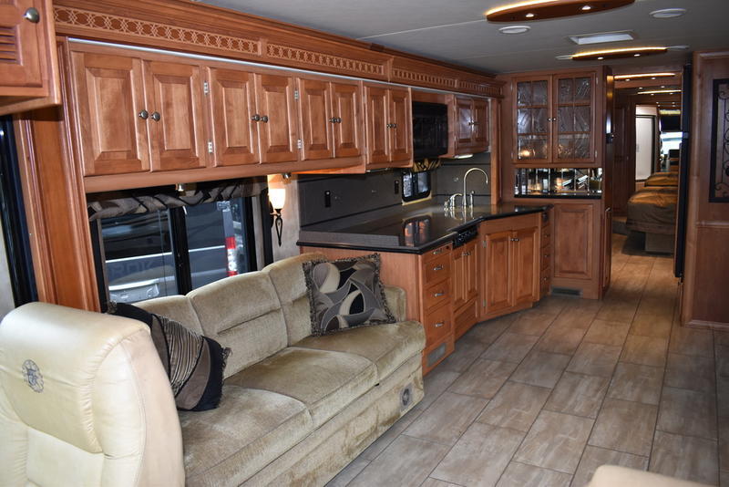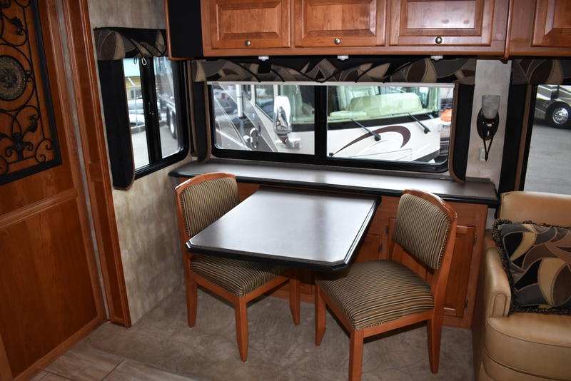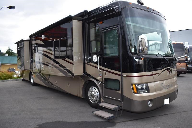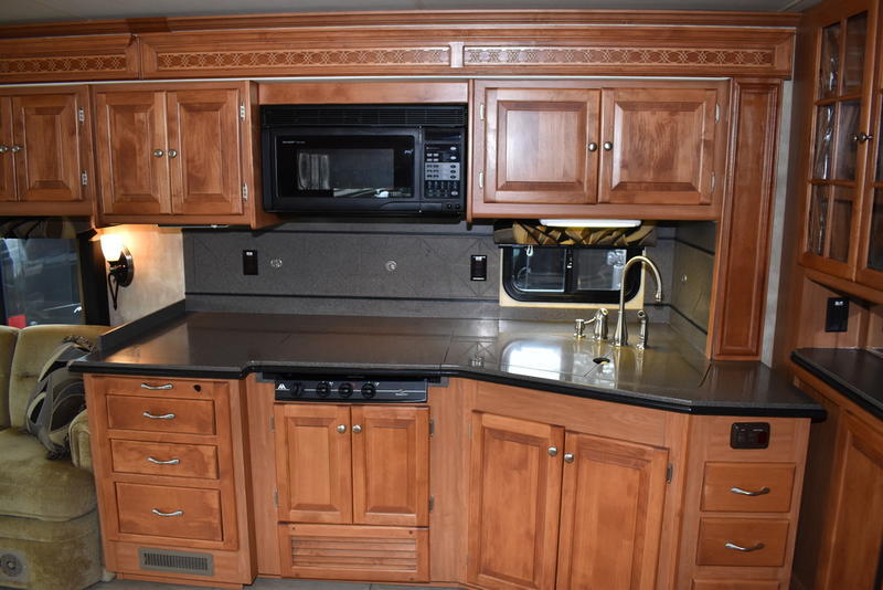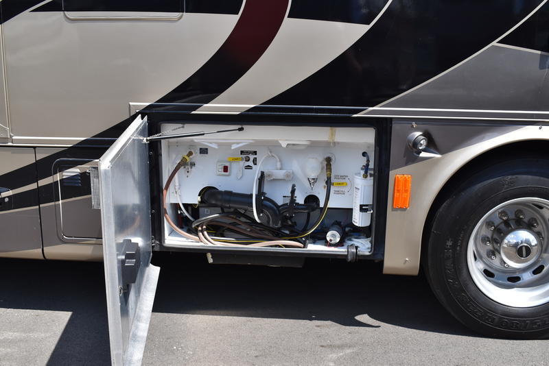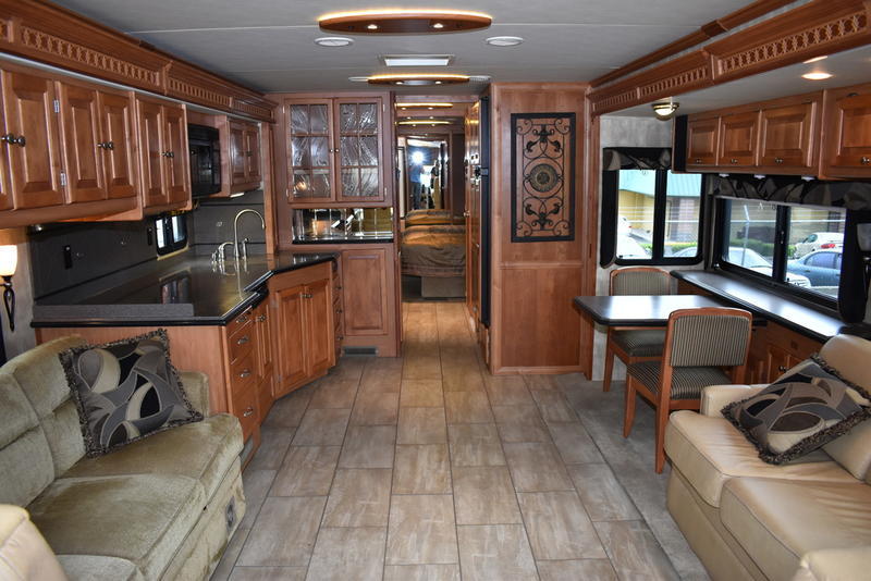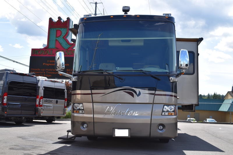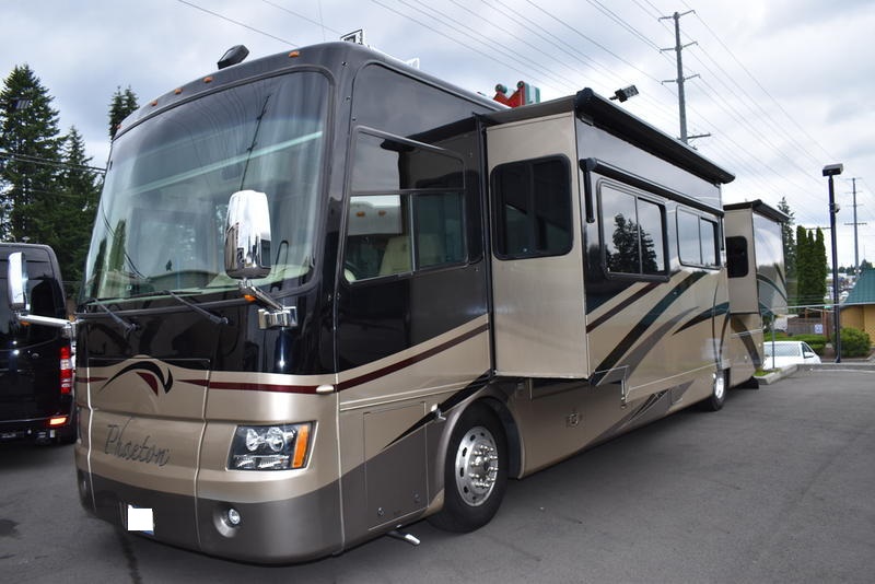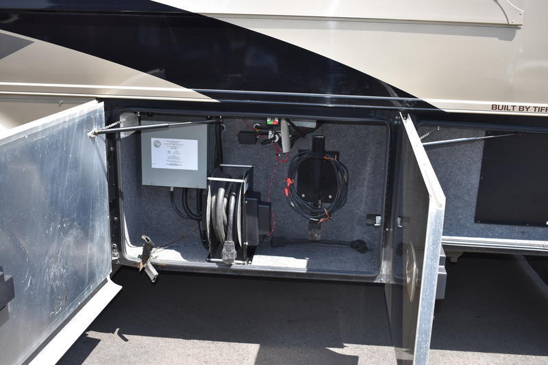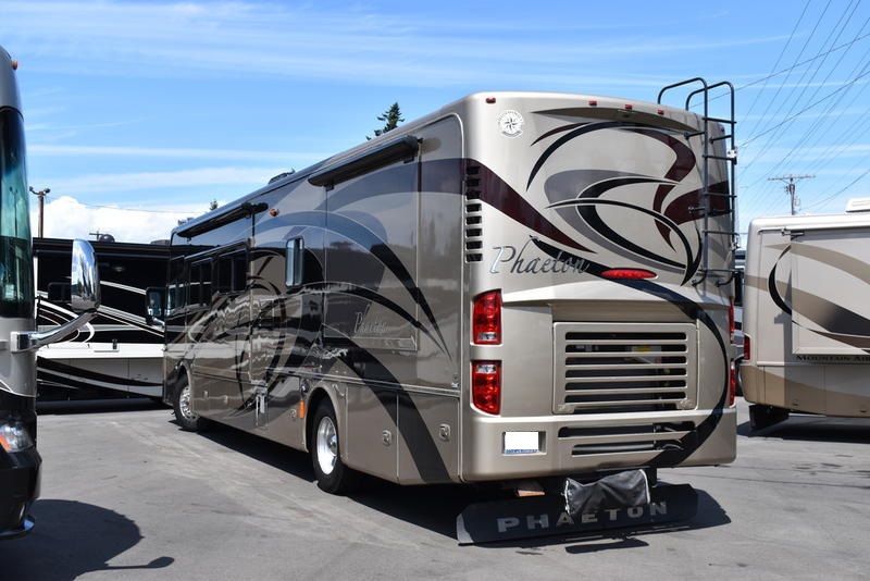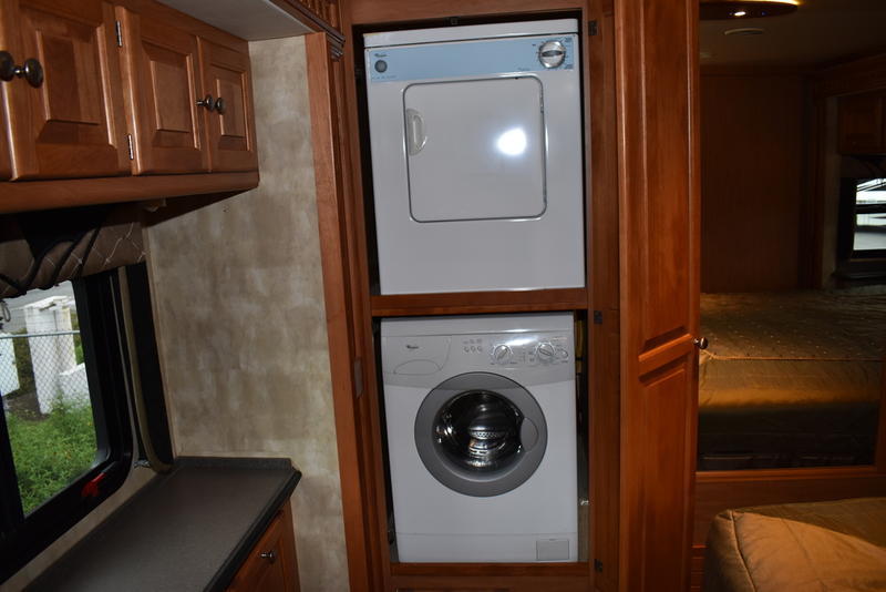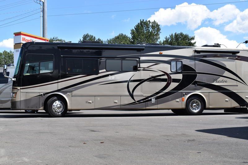 All tires replaced with michelins 3 years a go less than 5000 miles on them. The kitchen has a 3 burner cook top, a microwave, double bowl undermount sink and 4 door refrigerator, HDTV, a sleeper sofa, a lounge chair dinette.At the mid-section is a split bath with an enclosed shower.The bedroom has a walk around king size bed, overhead storage and a stacked washer and dryer. This Tiffin Phaeton is equipped with a 8000KwOnan diesel RV generator with 120 hours, lots of storage in compartments, a back up camera, roof ladder, automatic leveling jacks and a powerawning. If You are looking for a Tiffin Phaeton look no further then this extreamly clean and well cared for RV.